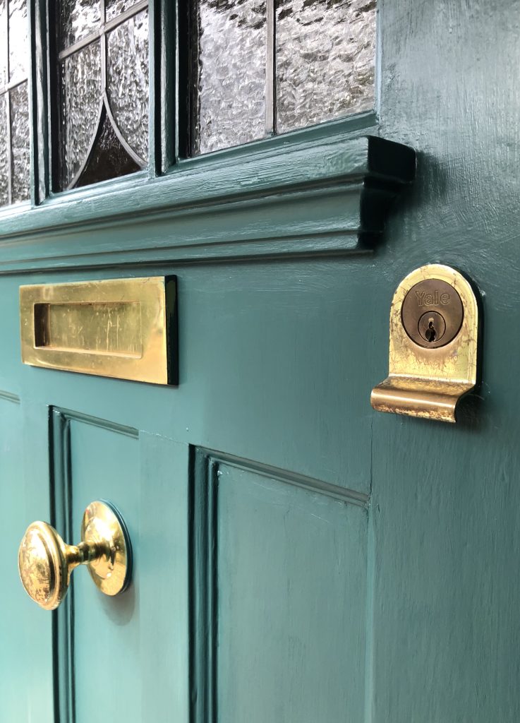 And voila! Within seven days I had researched and chosen that paint, rubbed down and filled, and twice painted the door. I used only half a 2.5ml tin of intelligent exterior eggshell Goblin 311 on my front door and now I’m considering using the remainder on my side gate to finish the look.