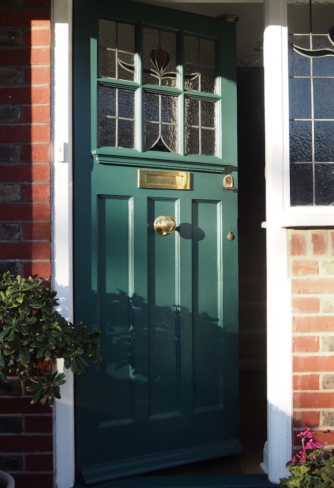 So, my first issue with the above scenario was my front door. Our wonderfully glorious hot summer had effectively created a sort of chemical peel on the paintwork of my original 1930s solid wood door. It was in desperate need of some TLC. Firstly, I feel the need to set the scene. We live in deepest Surrey, where a hot pink front door would not only look out of place in our street, but also not in keeping with the red brick of our 1930s home.
